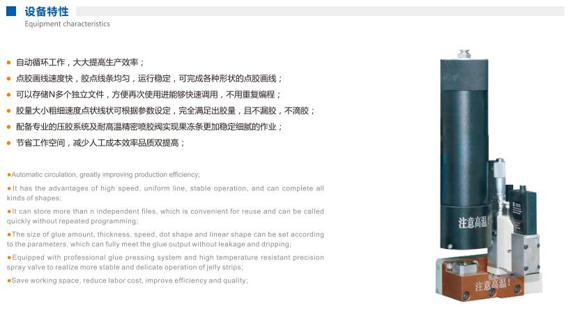 Automatic cycle work, greatly improving production efficiency; Quick dispensing line drawing speed, uniform dispensing line, stable operation, capable of completing various shapes of dispensing line drawing;